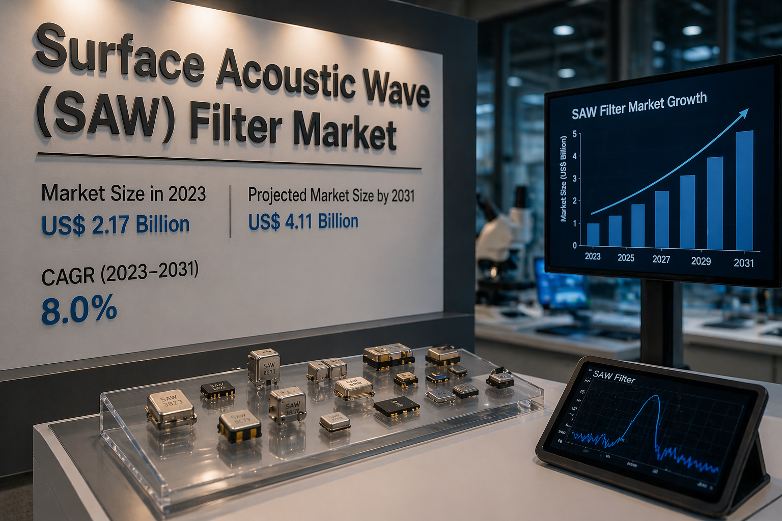 The Surface Acoustic Wave Saw Filter Market is experiencing strong growth driven by the expansion of wireless communication technologies and increasing demand for high-performance RF components. According to The Insight Partners, the market is projected to grow from US$ 2.17 billion in 2023 to US$ 4.11 billion by 2031, registering a CAGR of 8.0% during 2023–2031. The proliferation of smartphones, rising adoption of IoT devices, and deployment of 5G networks are key factors contributing to this growth. For detailed insights, refer to the Surface Acoustic Wave Saw Filter Market Analysis.