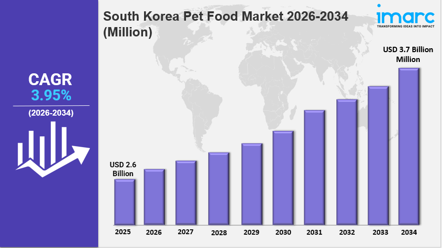 IMARC Group has recently released a new research study titled “South Korea Pet Food Market Report by Pet Type (Dogs, Cats, and Others), Product Type (Dry Pet Foods, Wet Pet Foods, Veterinary Diets, Treats and Snacks, and Others), Ingredient Type (Animal-Derived, Plant-Derived, Cereals and Cereal Derivatives, and Others), Distribution Channel (Supermarkets and Hypermarkets, Specialty Stores, Online Channels, and Others), and Region 2026-2034”, which offers a detailed analysis of the market drivers, segmentation, growth opportunities, trends, and competitive landscape to understand the current and future market scenarios.